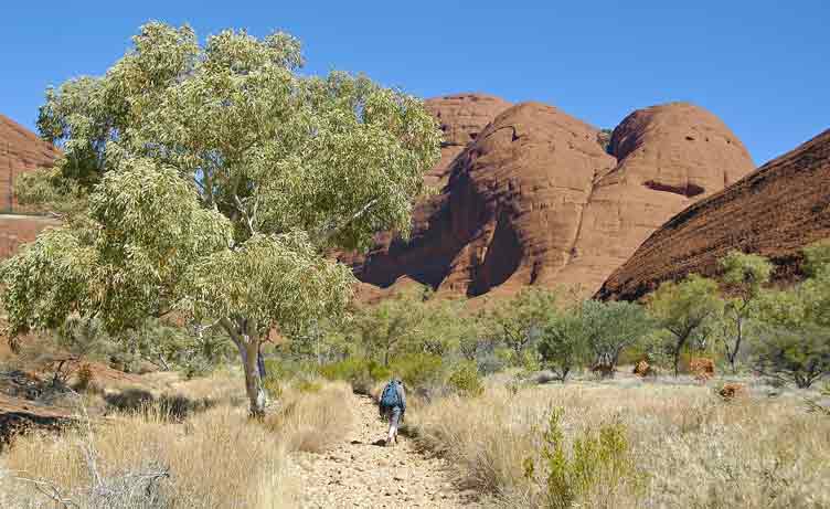 Whilst Uluru is the ‘star’ attraction of the region the Olgas are, in my opinion, the romantic understudy who shines. Whereas the Uluru walk just circuits the rock at the Olgas you can move amongst, around and over small parts. The ‘Valley of the Winds’ is a spectacular hike and we look forward to doing it again one day. At every stage there are visual encounters, many natural alters to sit down upon, gaze around from, with colours made vivid by the crisp desert light.