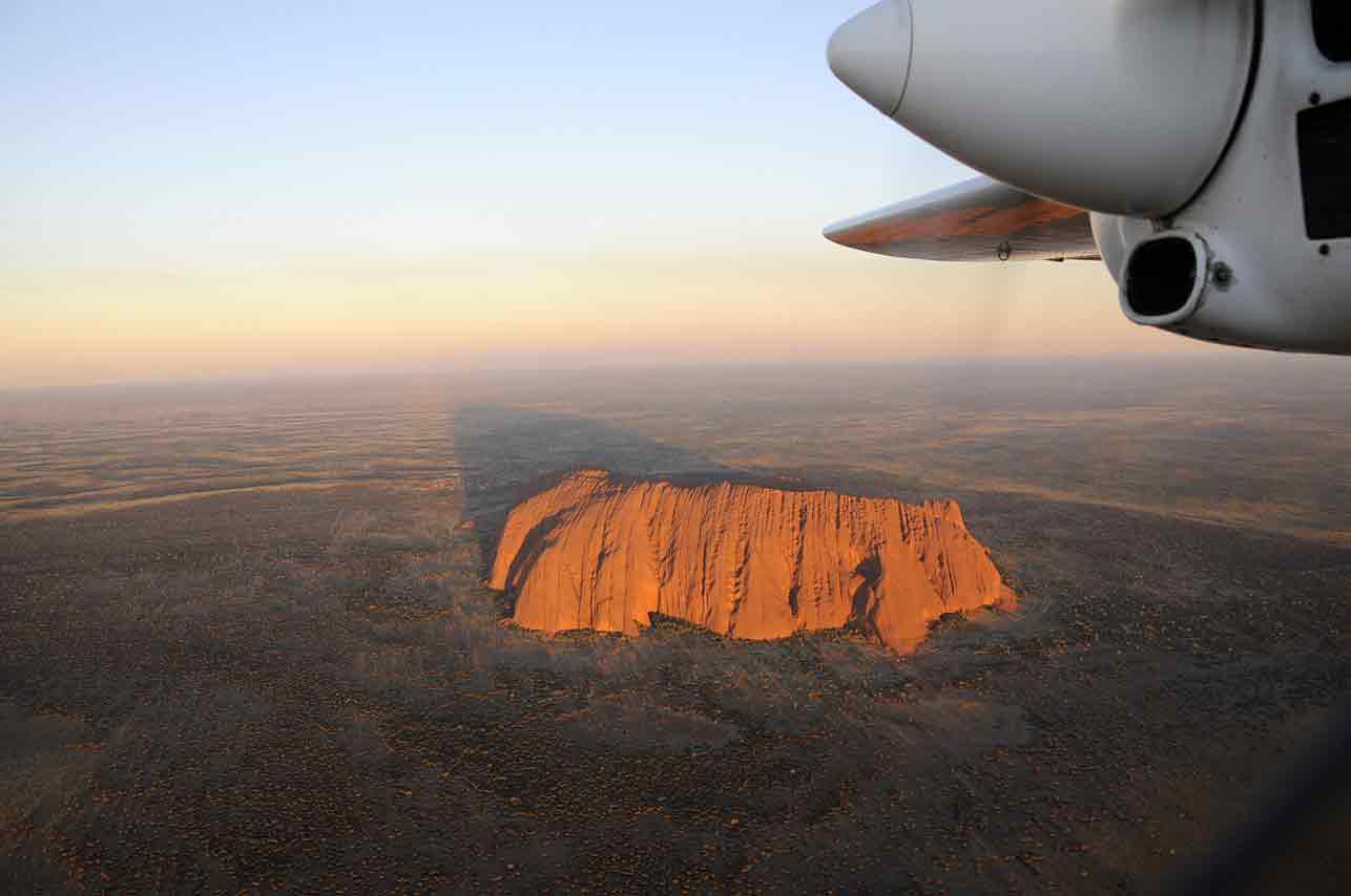 The light changes, due to an impending sunset, became move evident as we moved closer. Real chatter on the radio increased as various pilots let each other know they were taking off loaded with the many who take just sunset flights. Our pilot now descended as we made the perfectly timed run into the Olgas – I think he had flown this route a few times!! Now the true desert theatre really came into play with some superb work by natures lighting technicians! I would imagine many readers will have seen TV, or movie segments showing sunsets and sunrises on both the Olgas and Uluru, but it seems different when you are actually there absorbing this yourself – well I think so. It helps me want to go back and do it all again! Our pilot had his timings down perfect as we flew back and forth around the Olgas for a few minuets then scurried across to Uluru for the final curtain call of the grand artist, ‘Sunset’. Each circuit we did of the rock showed changing colours until that dark hue of curtain call became obvious. Another benefit of flying in the fixed wing was that some pilots will be night rated allowing for late returns to the airport. Helicopters are not allowed to fly at night unless they are, police, ambulance, military, or oilrig transfers. We soon departed the rock as the sun was sinking beneath the horizon. Correct approach calls were made to the airfield and a fast elliptical military style final approach, instead of the more standard ‘ flying the square’ was made. This is a faster way to land and with diminishing light the perfect method to land quickly and safely having allowed us the maximum time in the air. ‘Wow’ what an amazing two hours was the collective comment of the passengers on board. View Flight Options.