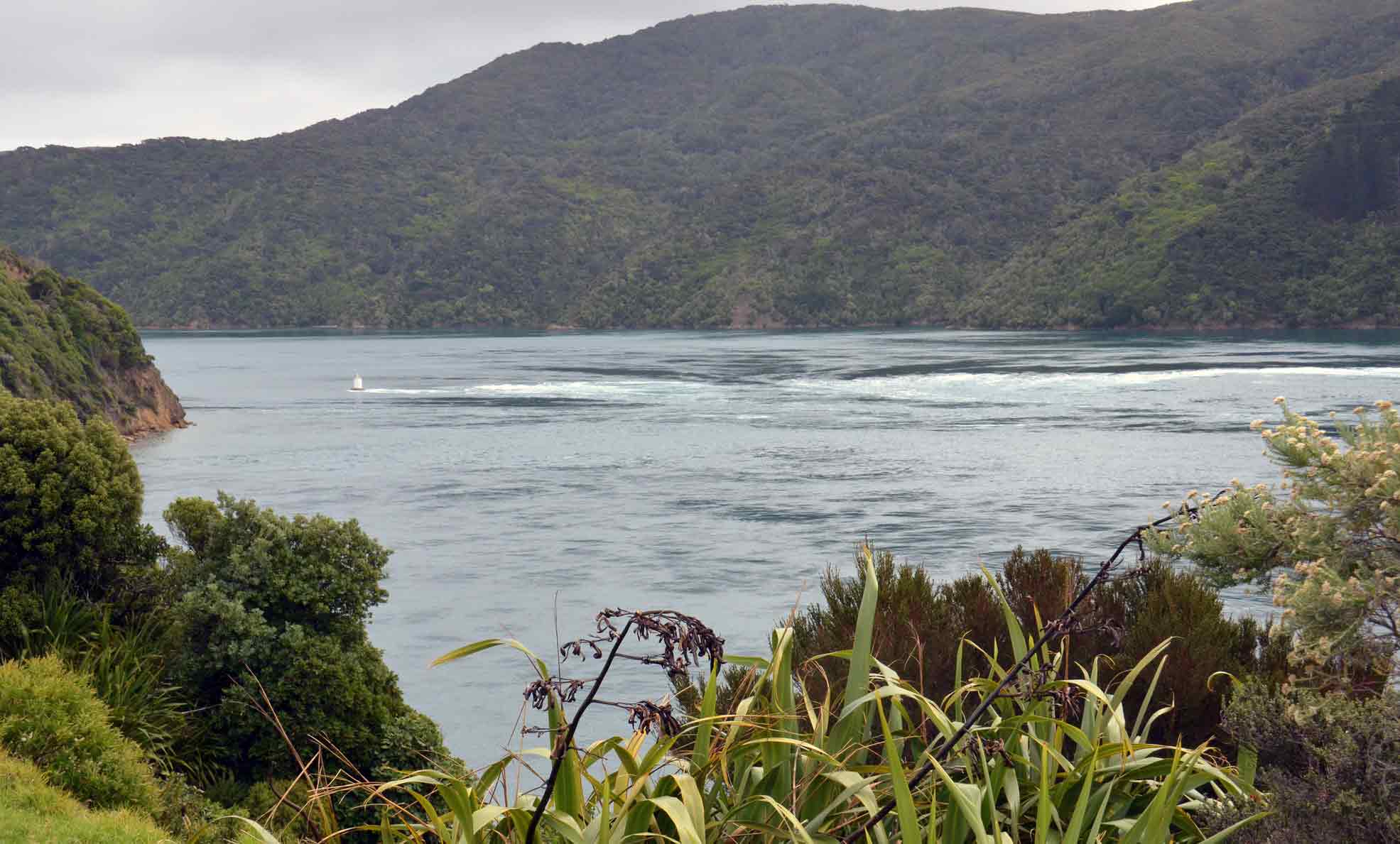 French Pass is home to one of the worlds great natural wonders a Tidal Race (Flow). What is a tidal race? Observing the change from calm water to a seething flow is inspiring. If you are lucky enough to see a boat trying to move across (at a diagonal) the flow to Durville Island you will see quite clearly how much force is being exerted. Boats wishing to transit the pass wait for slack tide and then make their dash! More about French Pass itself.