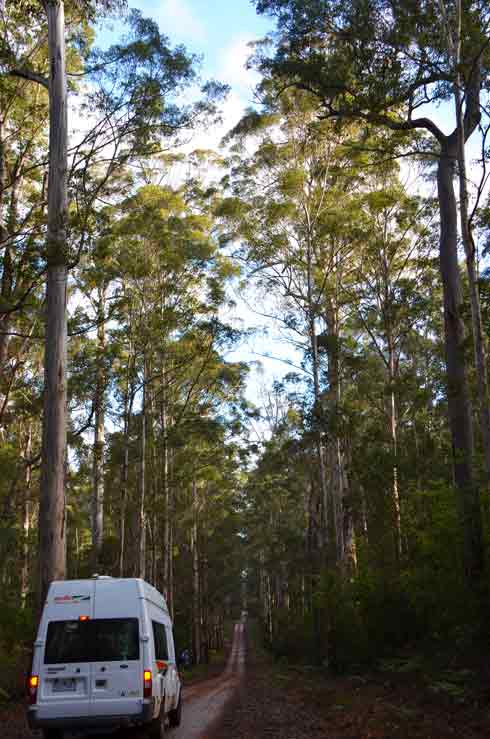 The ‘Mother of all Tingles’ is further along the highway and accessed by a dirt road which operates in a one way driving route, a good safety measure on such narrow forest tracks.