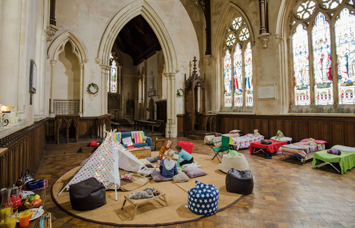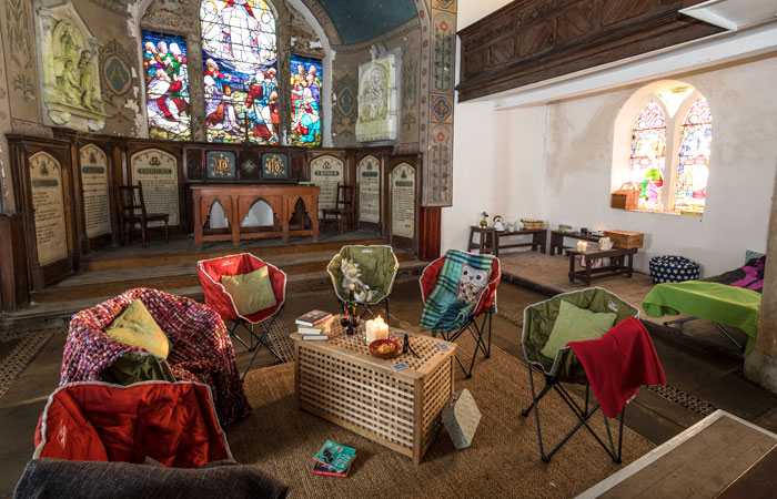 Included in your stay are camp chairs, tea and coffee, camp beds, water, a kettle, battery-powered candles, lanterns and fairylights and access to a toilet – but no shower. And because it’s the UK, you’re allowed to drink and even host parties in some of the churches.